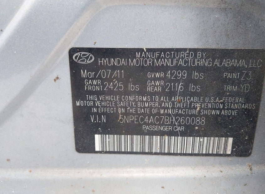 - VIN: 5NPEC4AC7BH260088