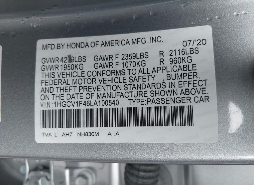 - VIN: 1HGCV1F46LA100540