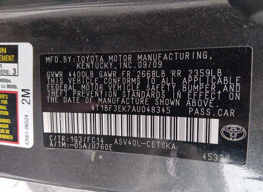 - VIN: 4T1BF3EK7AU048345