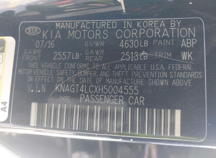 - VIN: KNAGT4LCXH5004555