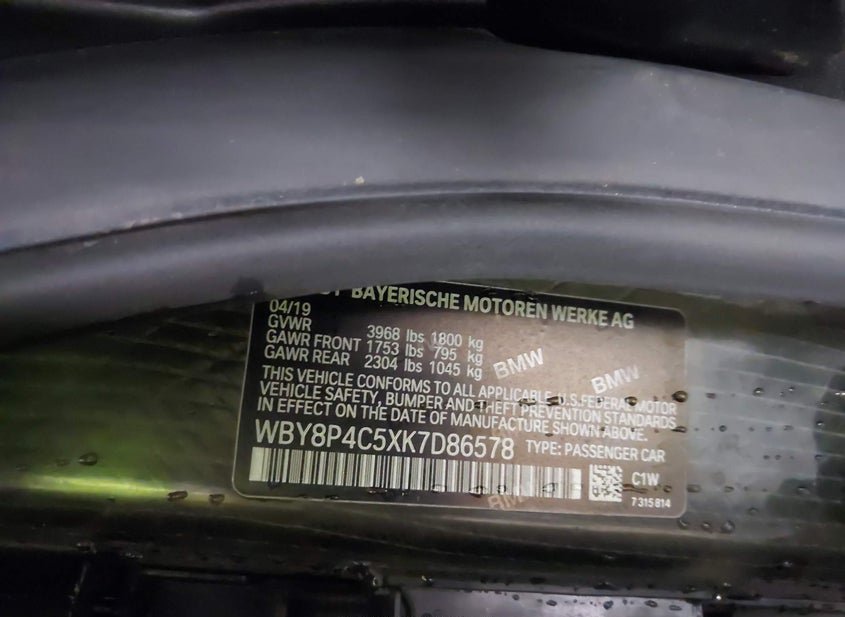 - VIN: WBY8P4C5XK7D86578