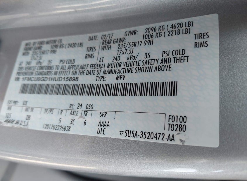 - VIN: 1FMCU0GD1HUD15898