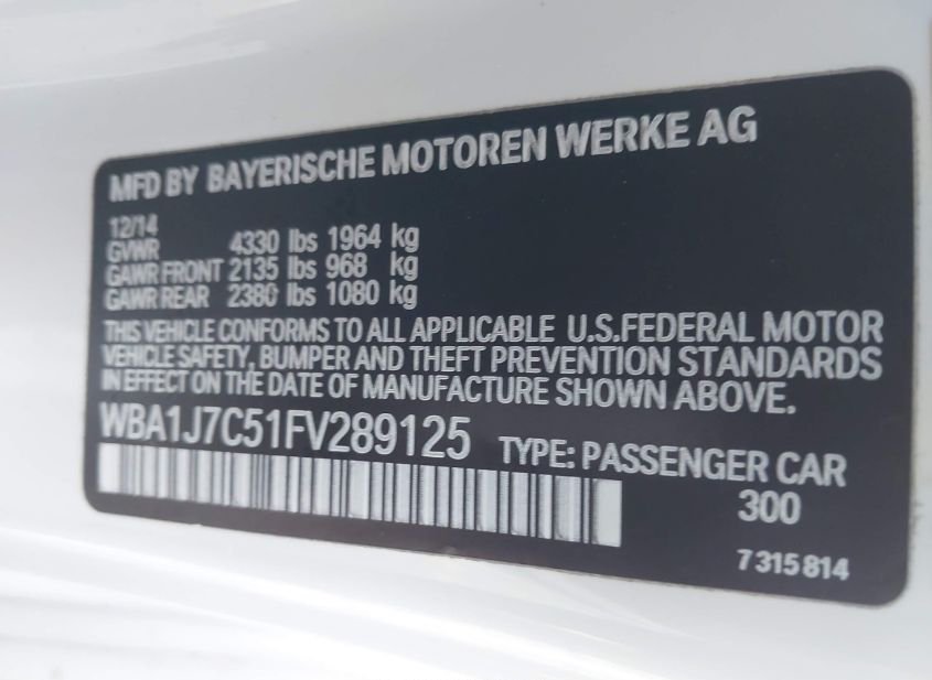 - VIN: WBA1J7C51FV289125