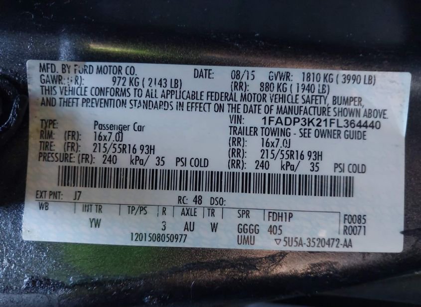 - VIN: 1FADP3K21FL364440
