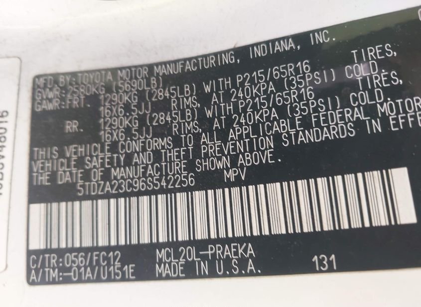 - VIN: 5TDZA23C96S542256