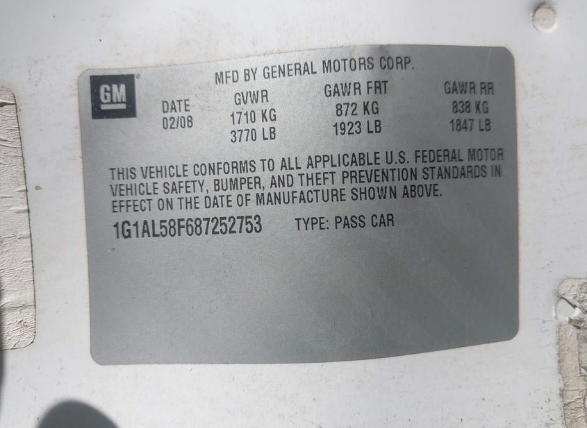 - VIN: 1G1AL58F687252753