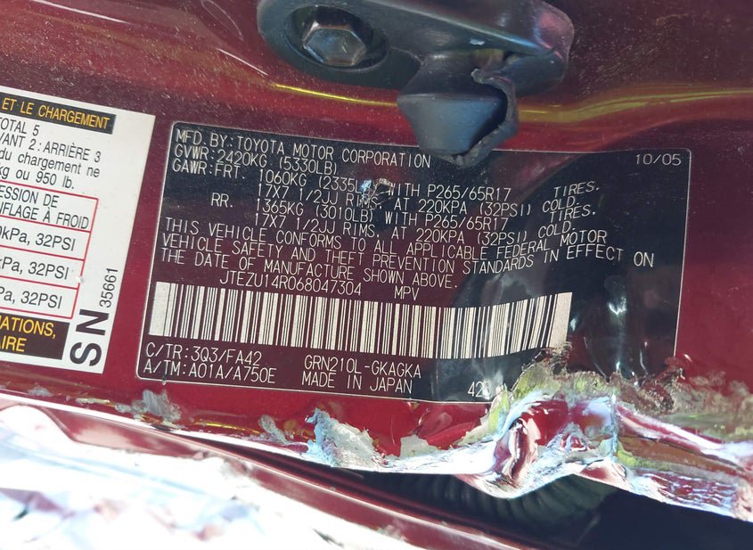- Название лота: 2006 TOYOTA 4RUNNER SR5 V6