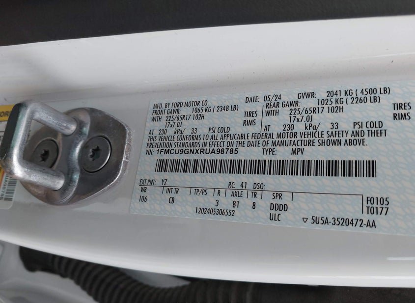- VIN: 1FMCU9GNXRUA98785