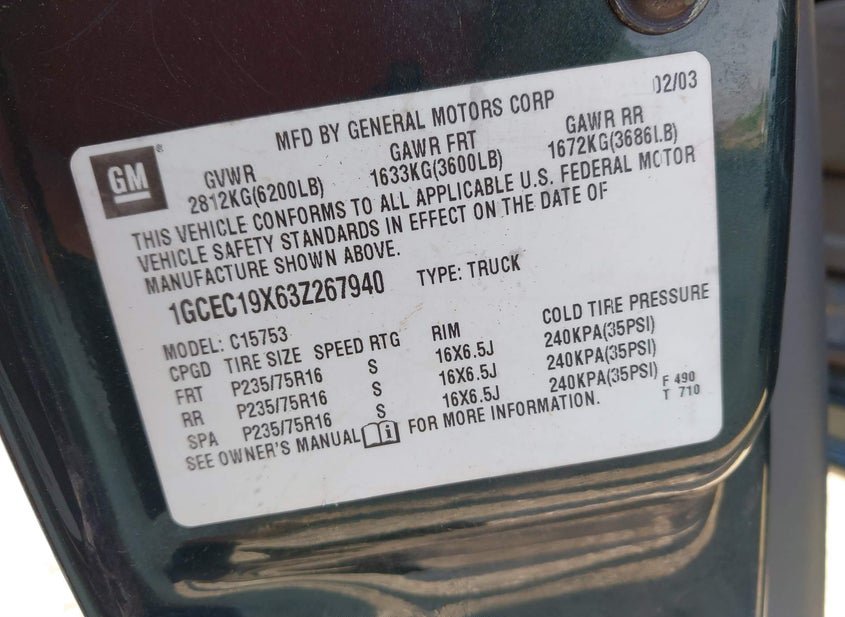 - VIN: 1GCEC19X63Z267940