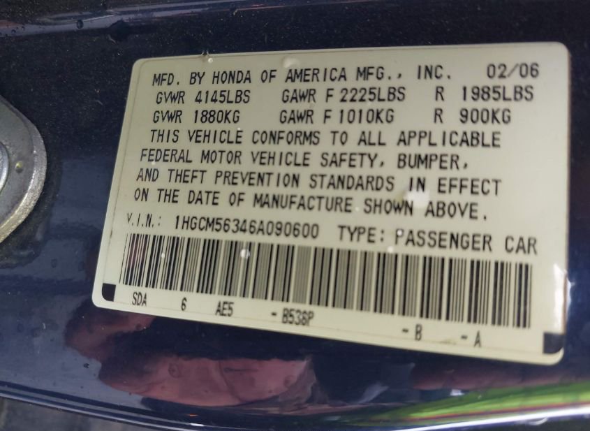 - VIN: 1HGCM56346A090600