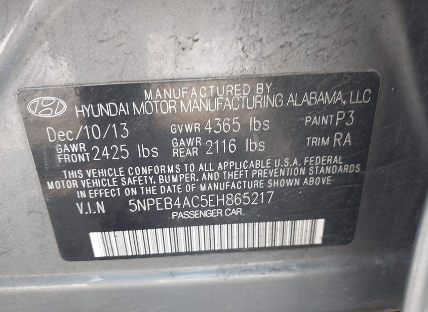 - VIN: 5NPEB4AC5EH865217
