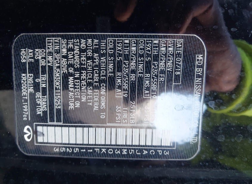 - Название лота: 2019 INFINITI QX50 PURE