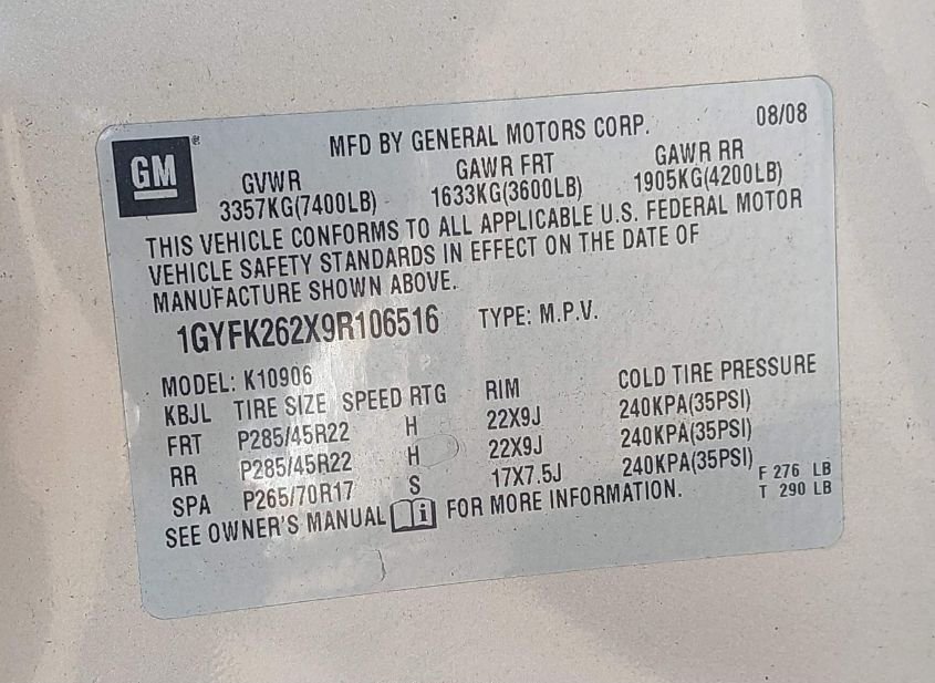 - VIN: 1GYFK262X9R106516