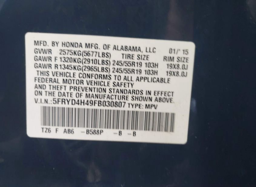 - VIN: 5FRYD4H49FB030807