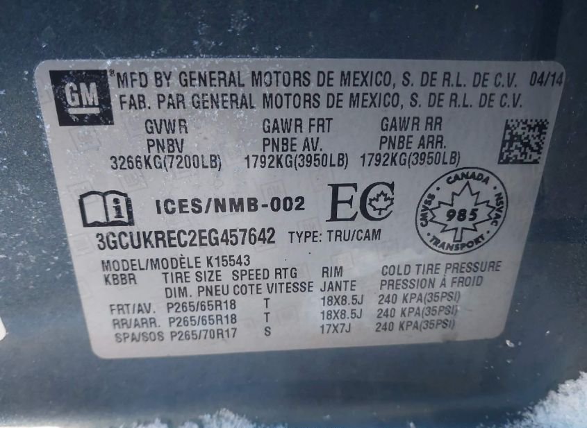 - VIN: 3GCUKREC2EG457642