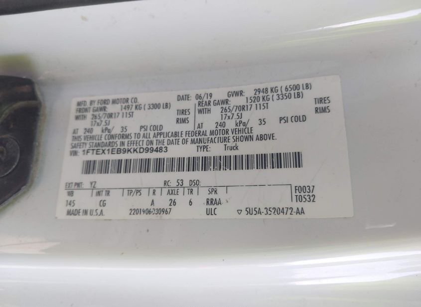 - VIN: 1FTEX1EB9KKD99483