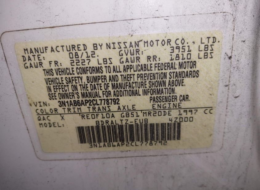 - VIN: 3N1AB6AP2CL778792