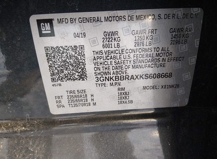 - VIN: 3GNKBBRAXKS608668