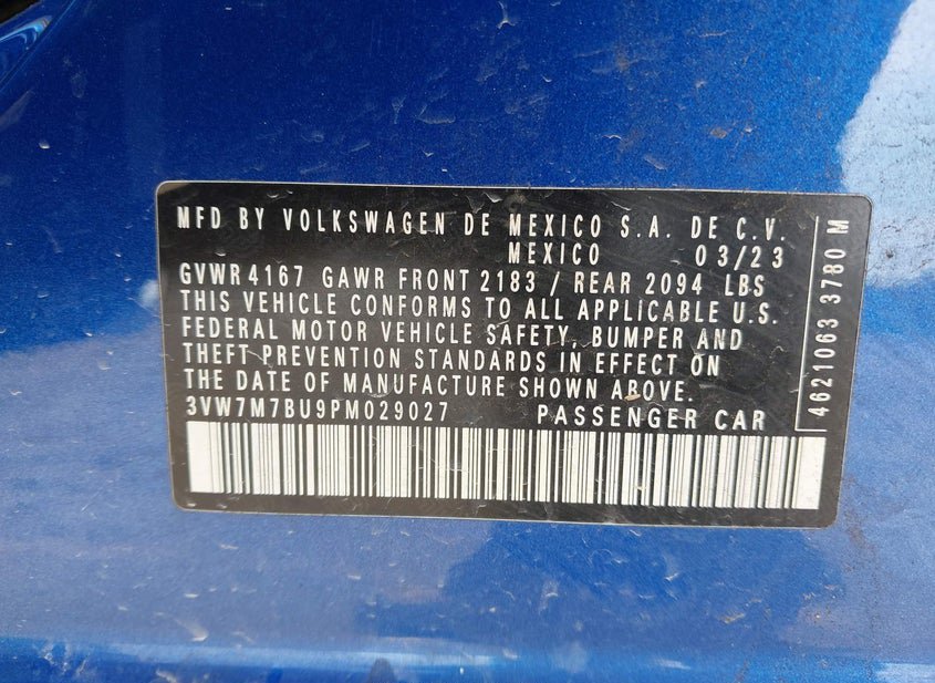 - VIN: 3VW7M7BU9PM029027