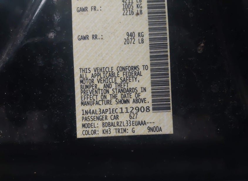 - VIN: 1N4AL3AP1EC112908