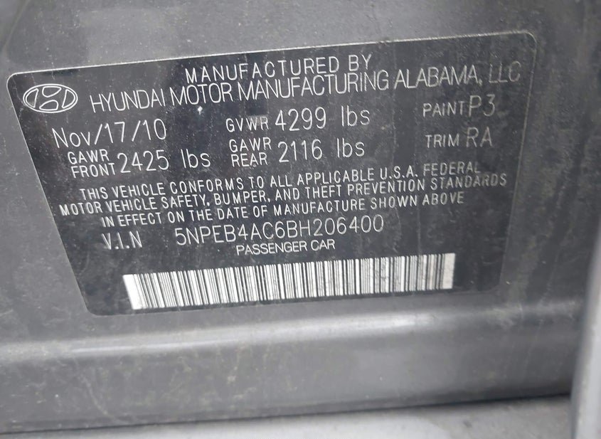 - VIN: 5NPEB4AC6BH206400