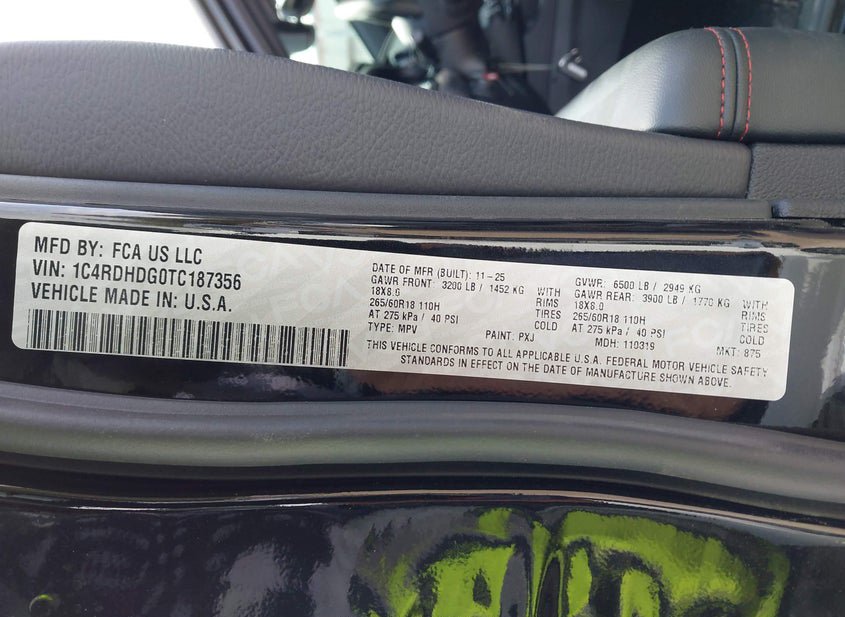 - VIN: 1C4RDHDG0TC187356