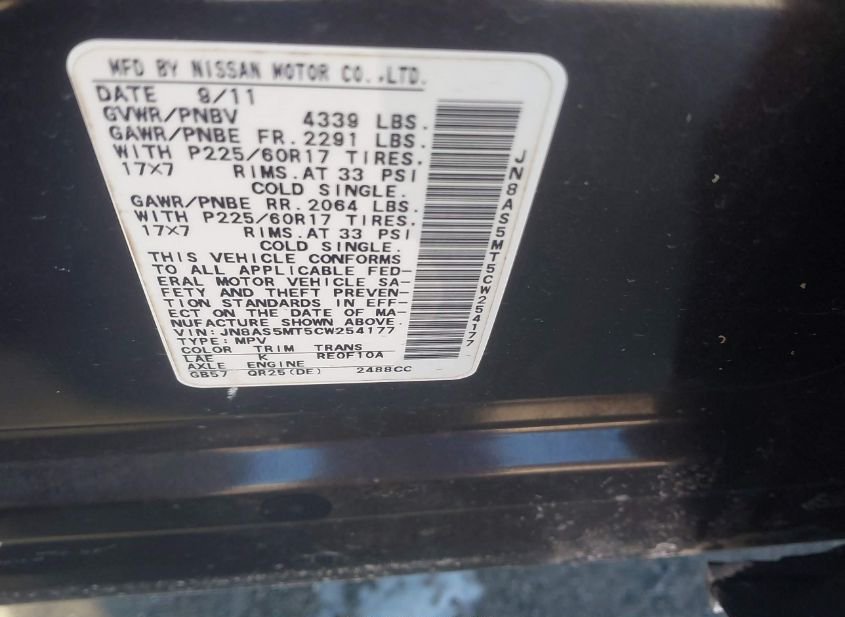 - VIN: JN8AS5MT5CW254177