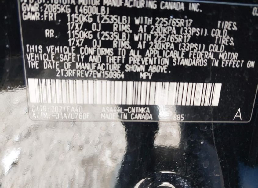 - VIN: 2T3RFREV7EW150964