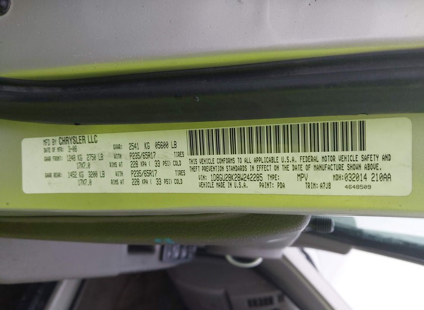- VIN: 1D8GU28K28W242285
