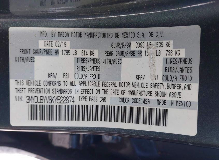 - VIN: 3MYDLBYV8KY522874