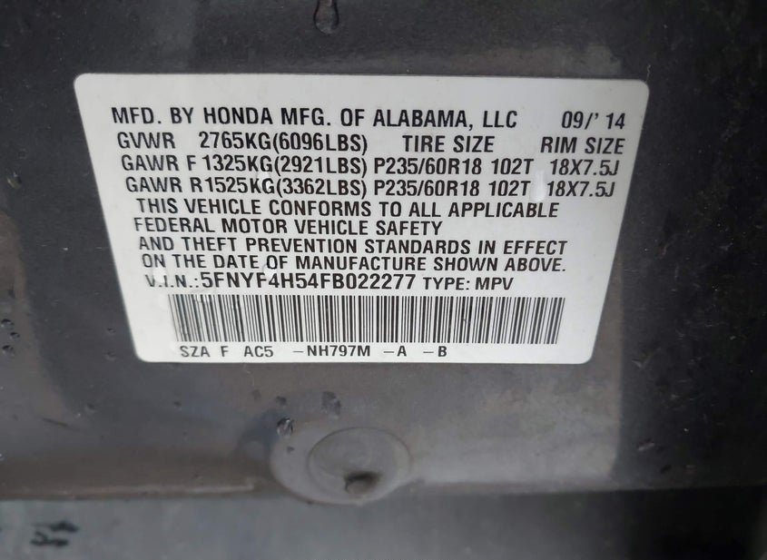 - VIN: 5FNYF4H54FB022277