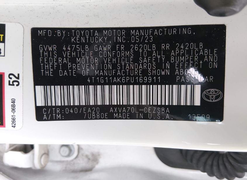 - VIN: 4T1G11AK6PU169911