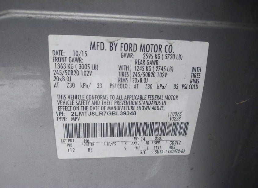 - VIN: 2LMTJ8LR7GBL39348