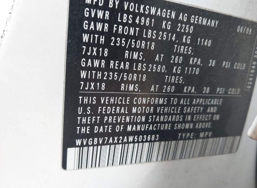 - VIN: WVGBV7AX2AW503683