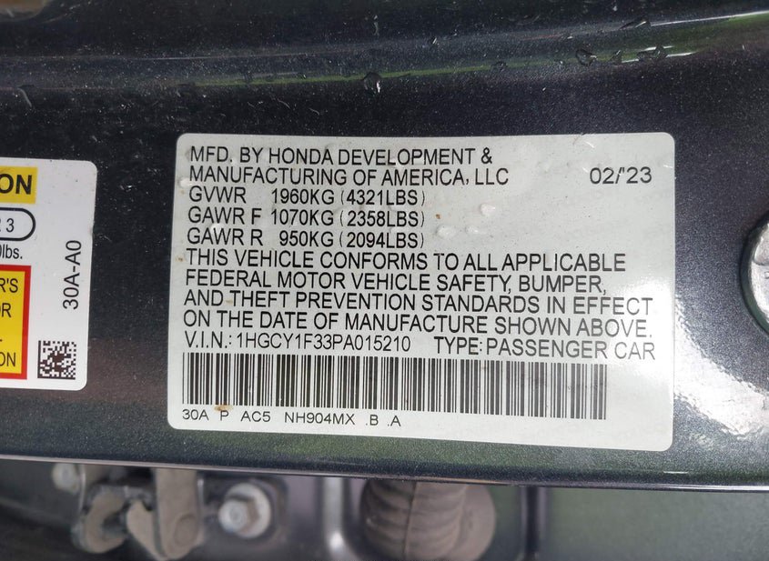 - VIN: 1HGCY1F33PA015210