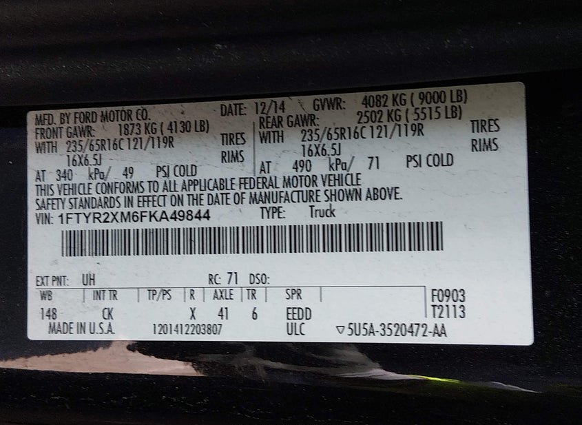 - VIN: 1FTYR2XM6FKA49844