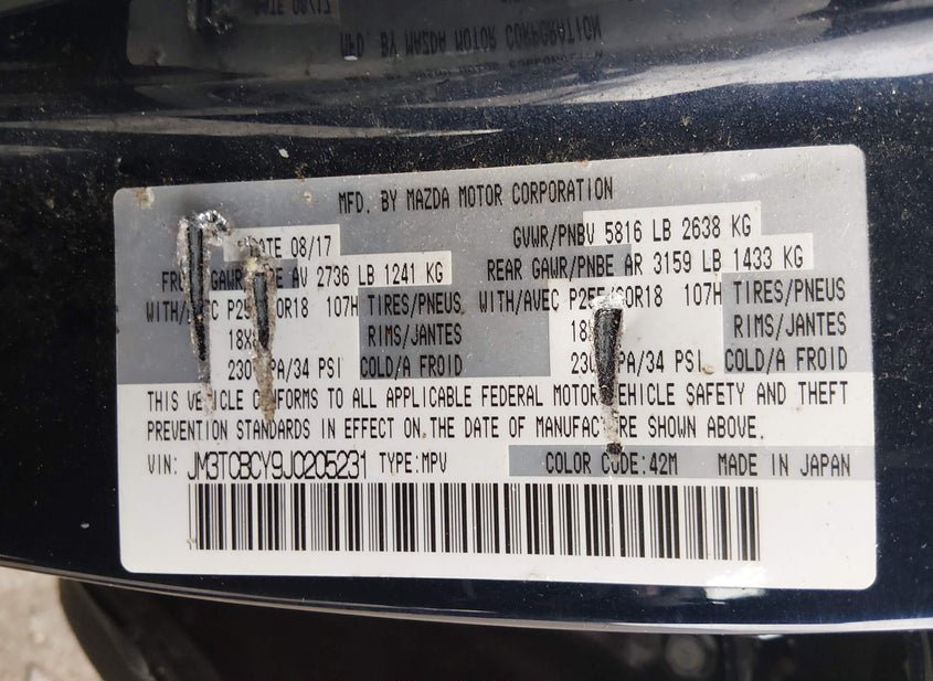 - VIN: JM3TCBCY9J0205231