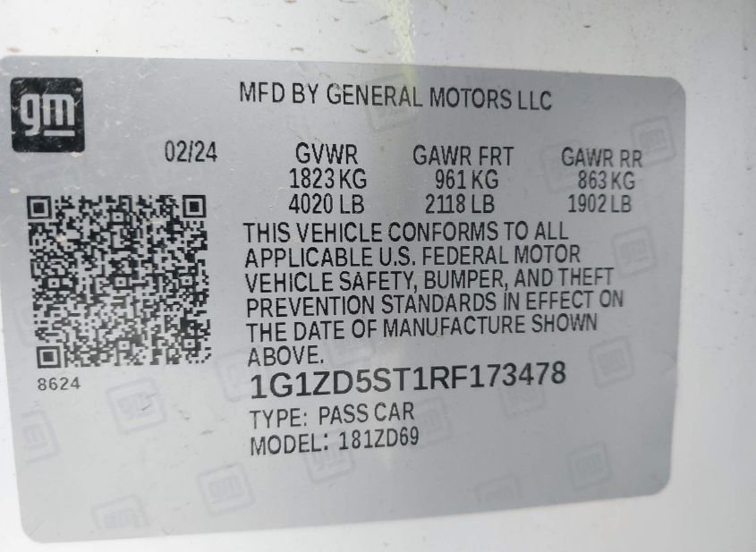 - VIN: 1G1ZD5ST1RF173478