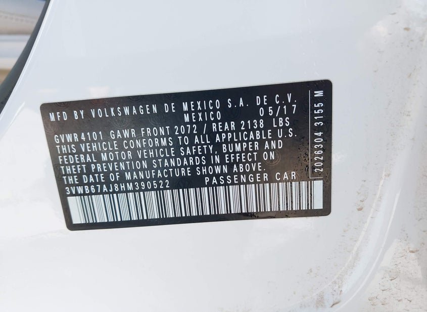 - VIN: 3VWB67AJ8HM390522