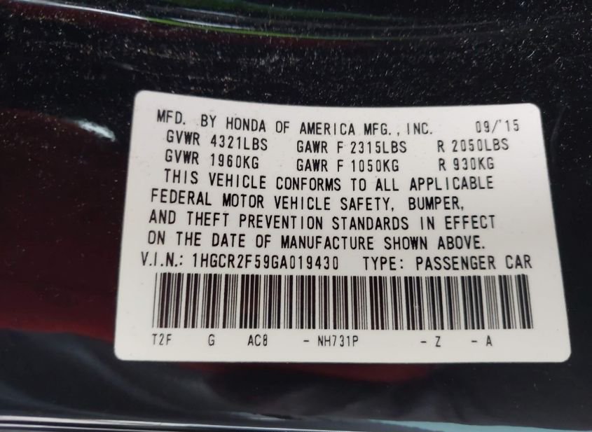 - VIN: 1HGCR2F59GA019430