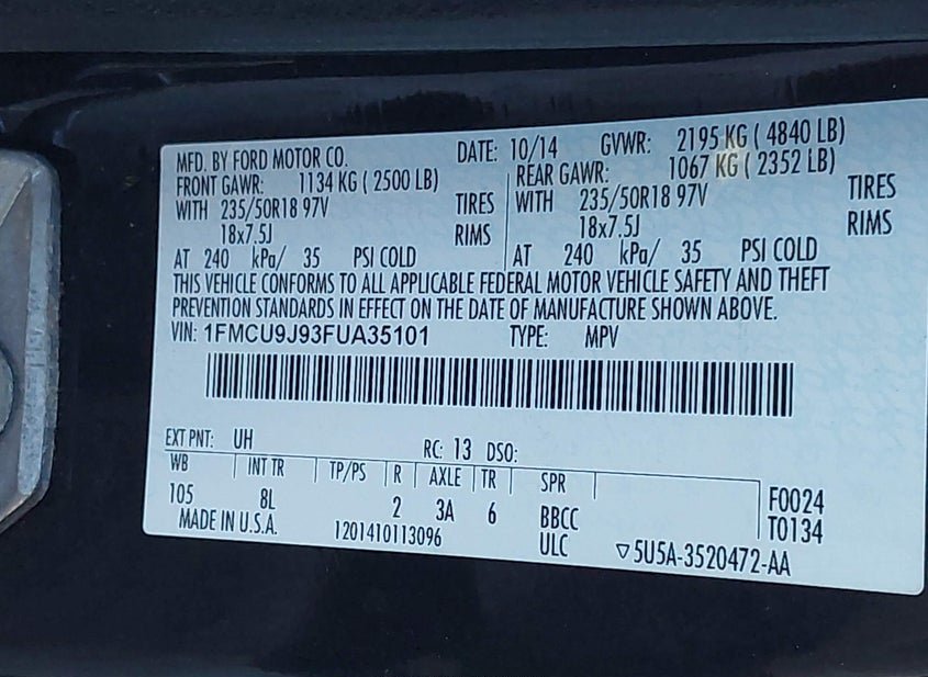 - VIN: 1FMCU9J93FUA35101