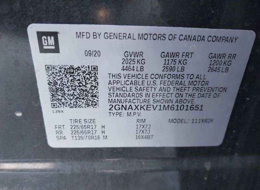 - VIN: 2GNAXKEV1M6101651