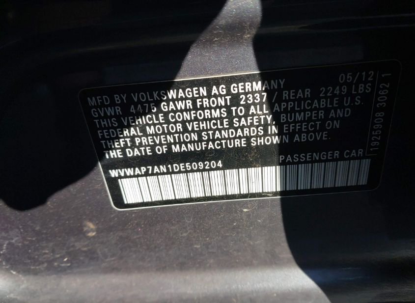 - VIN: WVWAP7AN1DE509204