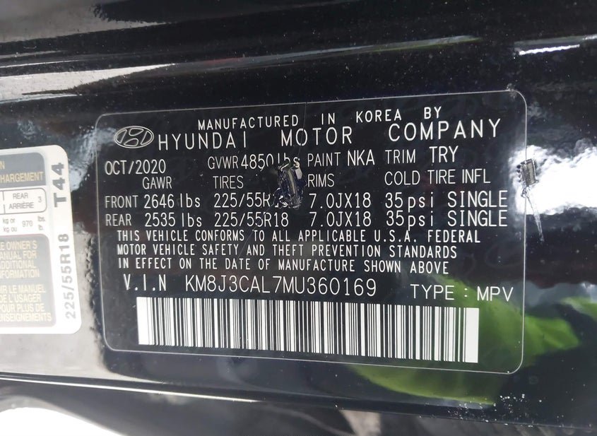 - VIN: KM8J3CAL7MU360169