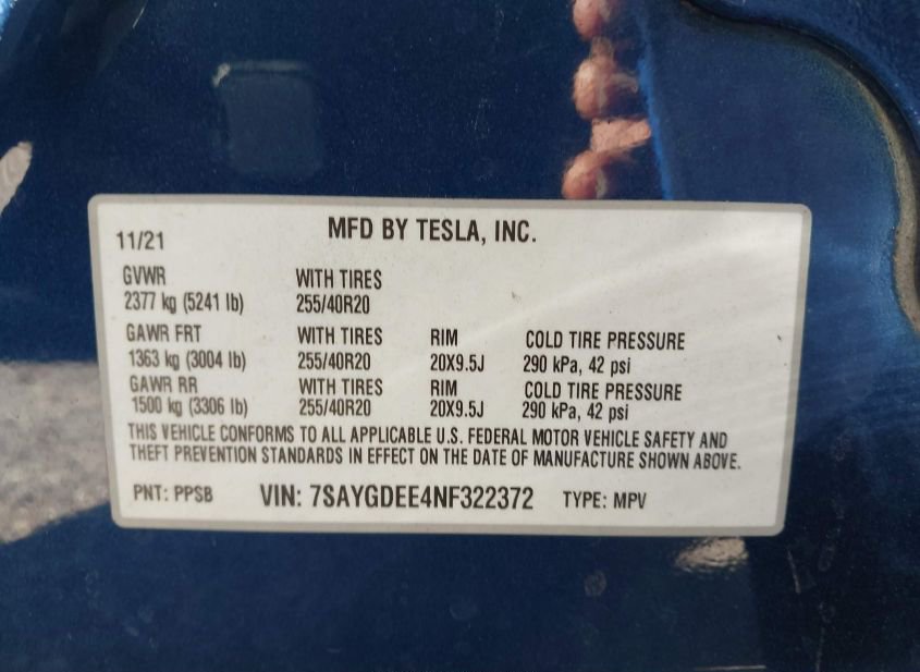 - VIN: 7SAYGDEE4NF322372