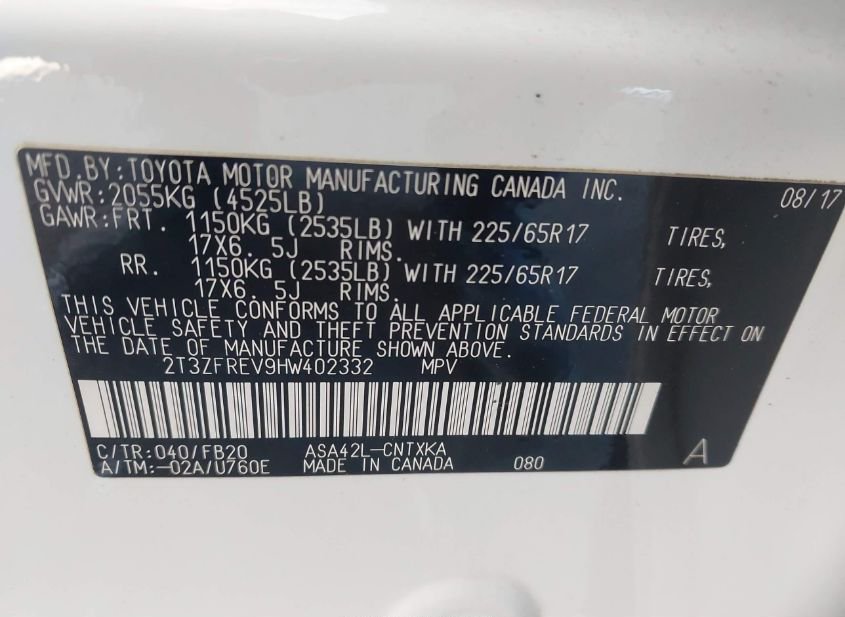- VIN: 2T3ZFREV9HW402332