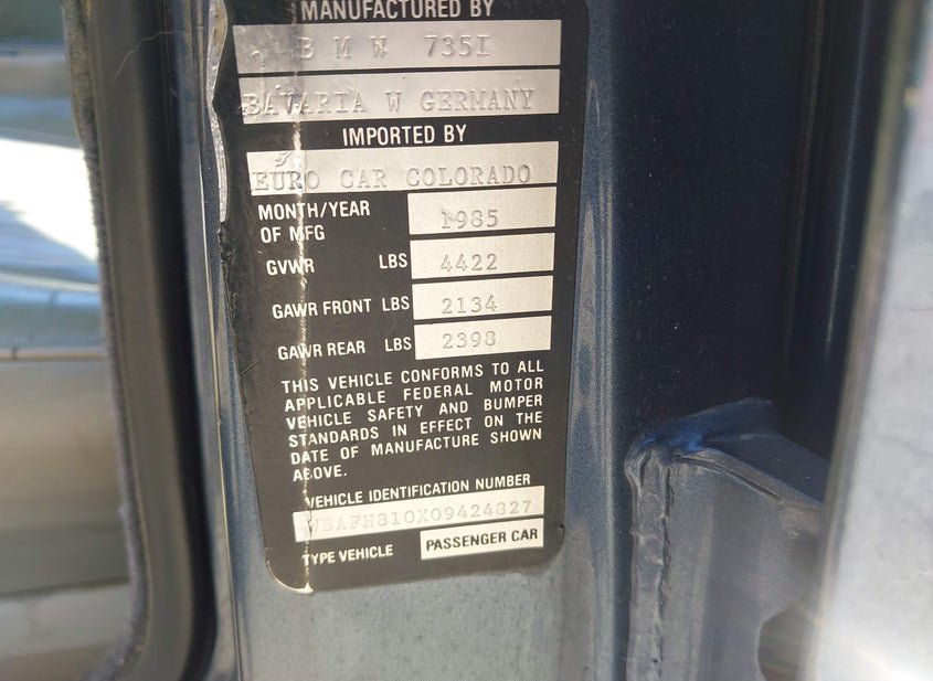 - Название лота: 1985 BMW 735I
