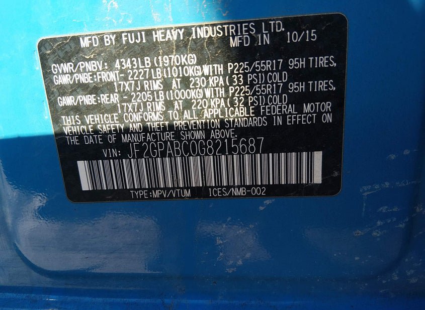 - VIN: JF2GPABC0G8215687