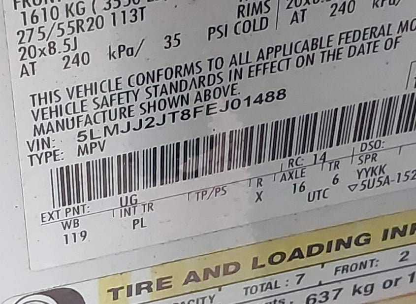 - VIN: 5LMJJ2JT8FEJ01488