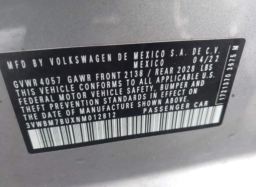 - VIN: 3VWBM7BUXNM012812